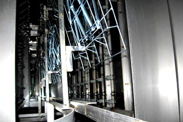 前處理設備根據(jù)工件形狀和生產(chǎn)量不同,主要結(jié)構(gòu)形式有浸漬式、隧道通過噴淋式: